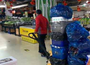 每逢周末或者節假日廈門家樂福超市貨銷量非常大,超市員工一天要補三次貨才能滿足客戶需求。超市員工補貨量較大,而且有些貨比較重,單靠人力是搬運不動的,員工通常會用手動搬運車來搬運貨物,方便員工補貨,提高工作效率。